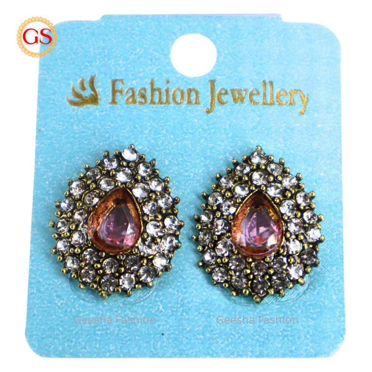 - Design: Traditional oxidized earrings with baby pink and white stones