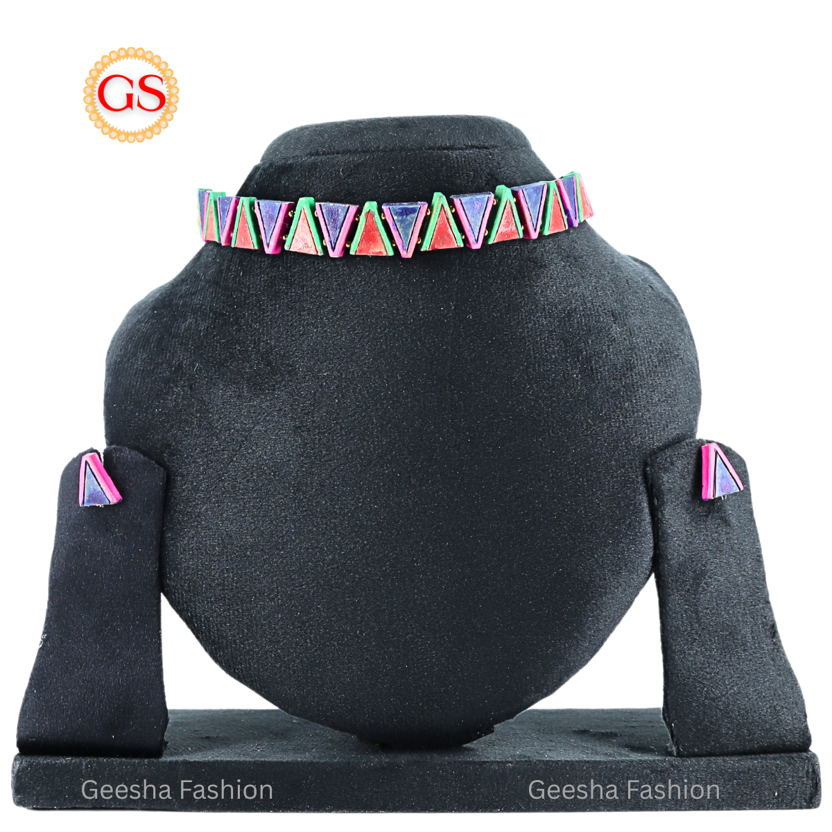Multicolour Triangle design Handmade Terracotta Chokkar and Earrings