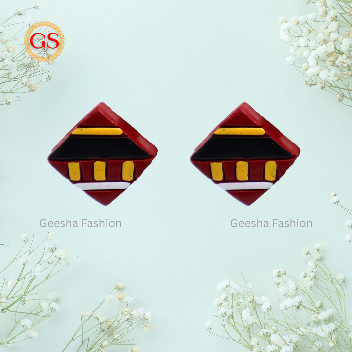 Add a touch of handmade charm to your everyday look with these vibrant handmade terracotta stud earrings in a beautiful red and yellow color combination. Designed for comfort and style, these minimalistic studs are perfect for office wear, casual outings, or a subtle ethnic statement.